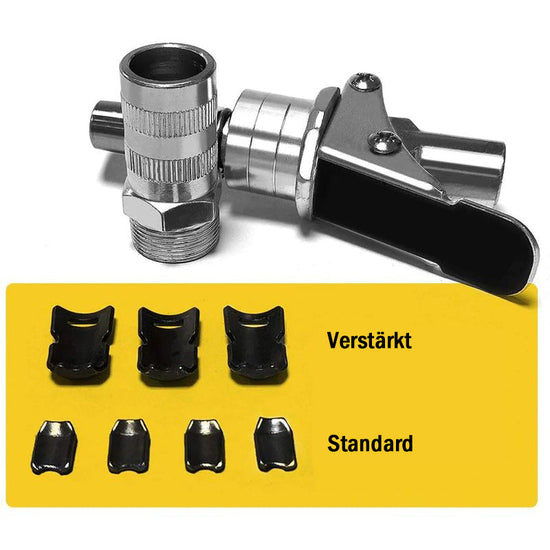 • 【Einhandbedienung】 Flexibles Werkzeug, einfach zu bedienen. Sobald die Fettkupplung mit der Zerk-Kupplung verriegelt ist, bleibt sie offen und die Hände werden losgelassen, um die Fettpresse zu bedienen.