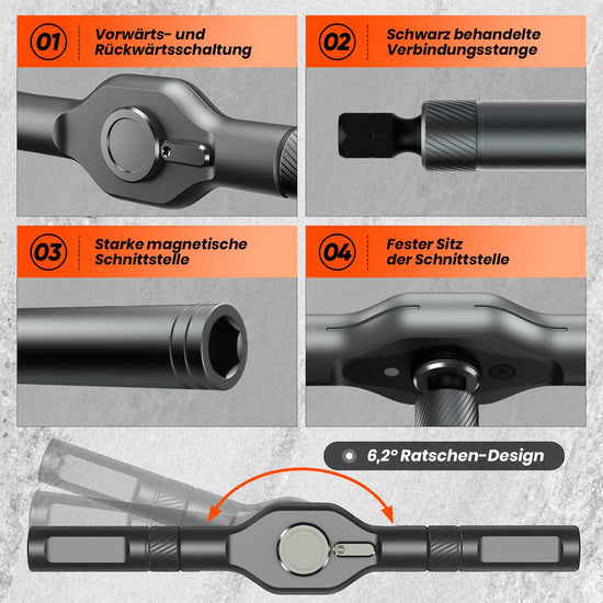 • Magnetisches Design für Komfort: Der magnetische Bit-Halter sorgt für schnelle und einfache Bit-Wechsel und hält die Schrauben sicher an Ort und Stelle, um ein müheloses Festziehen oder Lösen zu ermöglichen. Keine verlorenen Schrauben mehr – der starke magnetische Griff verbessert Ihre Effizienz und Präzision bei der Arbeit an filigranen Projekten wie der Montage von Geräten, der Arbeit an Autos oder der Reparatur empfindlicher Haushaltsgeräte.