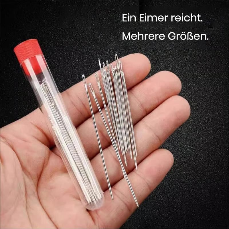 - âïž BENUTZERFREUNDLICHES DESIGN â Die Nadeln haben ein groĂes Ăhr fĂŒr einfaches EinfĂ€deln, wĂ€hrend die scharfen Spitzen sanft in den Stoff eindringen. Ein NadeleinfĂ€dler und ein Fingerhut machen den Vorgang sicherer und einfacher.