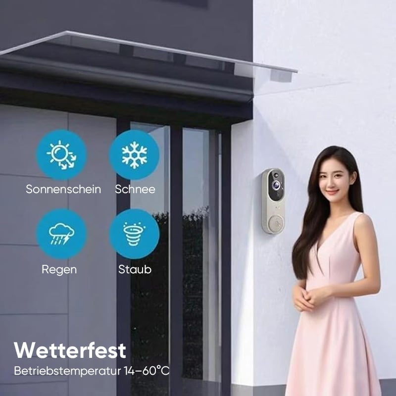 Batteriebetriebene Video-Türklingel mit Gong: Diese kabellose Video-Türklingelkamera ermöglicht eine einfache Installation dank eingebauter wiederaufladbarer Batterie. Keine Steckdose erforderlich und flexible Platzierung möglich. Unterstützt 2,4 GHz WLAN für eine stabile Verbindung.