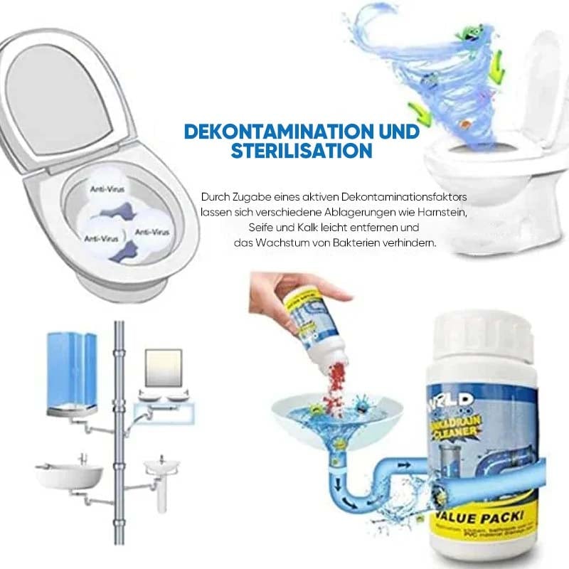 Die Anwendung ist einfach: Sie müssen nur das Pulver aufschütten. Es desodoriert mit einem frischen Duft und tötet dabei 99 % der Bakterien ab. Der leistungsstarke Spül- und Abflussreiniger ist nicht nur für Toiletten geeignet, sondern kann auch zum Reinigen von Küchenrohren, Waschbecken und Balkonabflüssen verwendet werden.
