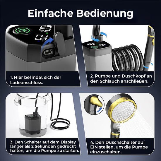 • 1 Set* Tragbare, wiederaufladbare Camping-Duschpumpe