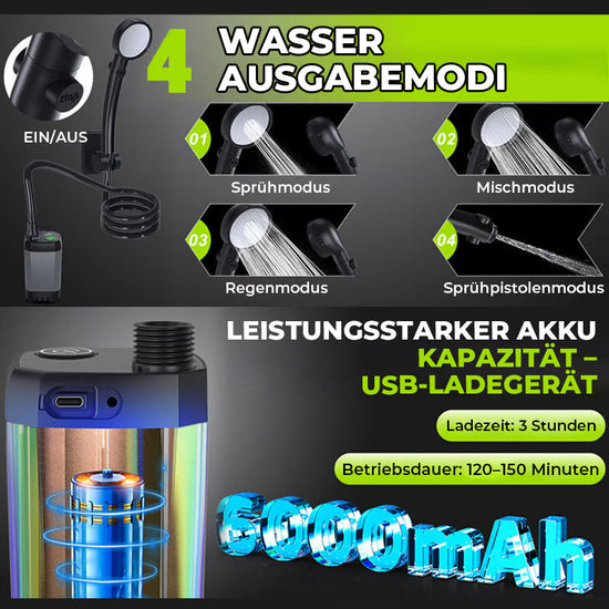 Tragbare, wiederaufladbare Camping-Duschpumpe