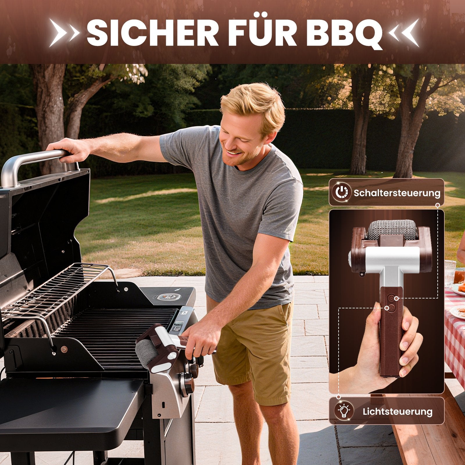 Integriertes LED-Licht: Mit dem eingebauten LED-Spotlight erkennen Sie jede Verschmutzung – ideal zum Grillen bei Nacht oder für eine gründliche Reinigung.