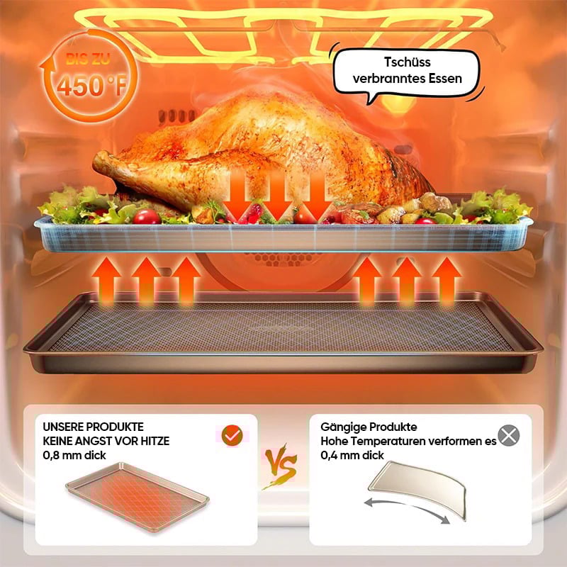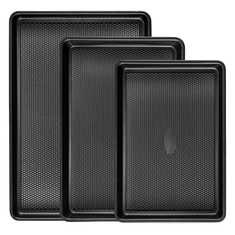 • Innovative Diamantstruktur: Das Backblech-Set verfügt über eine Diamantstruktur am Boden, die die Antihaft-Eigenschaften verbessert und für eine gleichmäßige, schnelle Luftzirkulation sorgt. So werden die Kekse gleichmäßig gebacken – ohne verbrannte oder halb rohe Stellen.