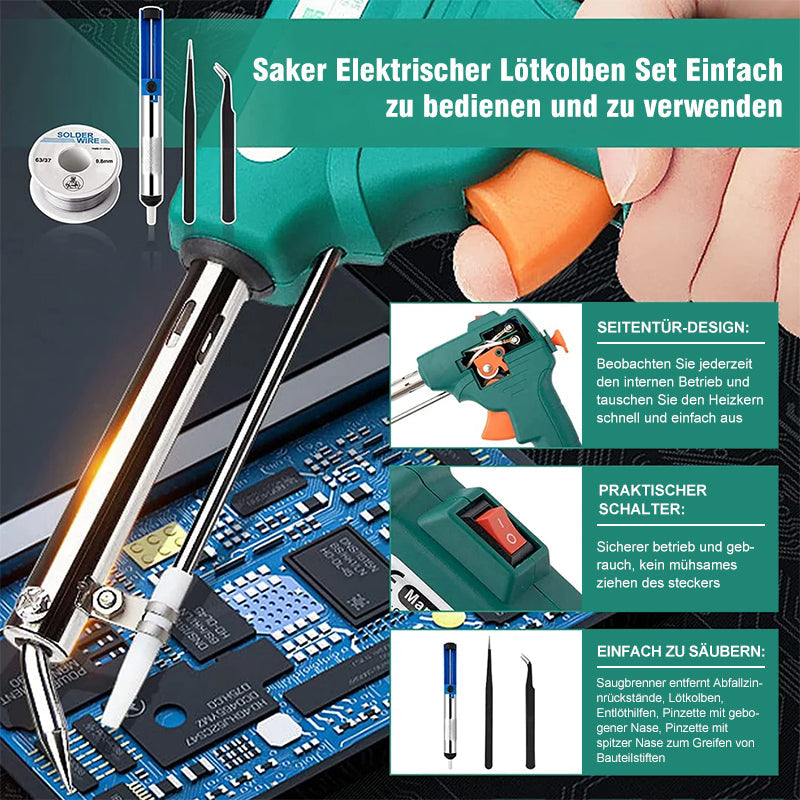 EINFACH ZU SÄUBERN: Saugbrenner entfernt Abfallzinnrückstände, Lötkolben, Entlöthilfen, Pinzette mit gebogener Nase, Pinzette mit spitzer Nase zum Greifen von Bauteilstiften