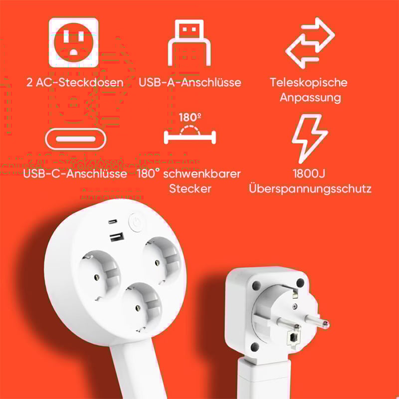 Keine Installation erforderlich: Stecken Sie die Steckdosenleiste einfach in eine vorhandene Steckdose, und sie ist sofort einsatzbereit – keine Werkzeuge oder Installation erforderlich.