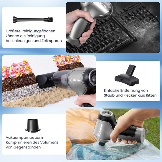 Saker 3-in-1 Verbesserter Kabelloser Mini-Handstaubsauger
