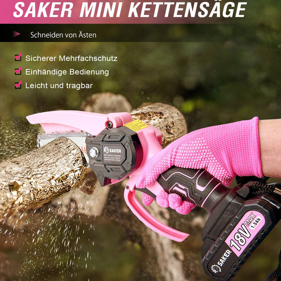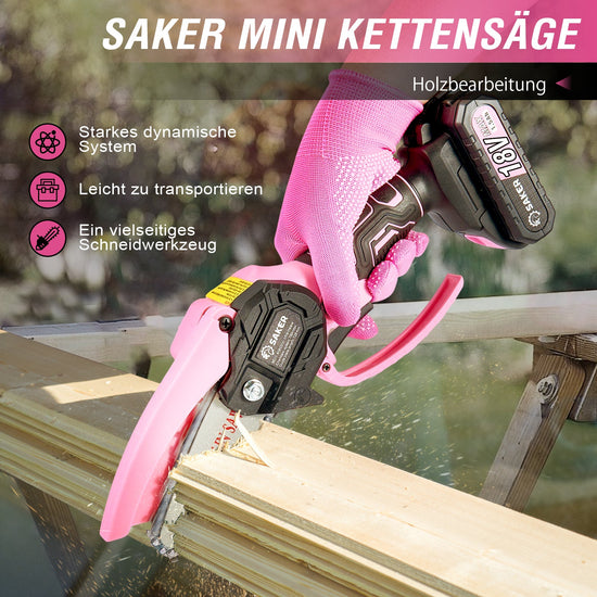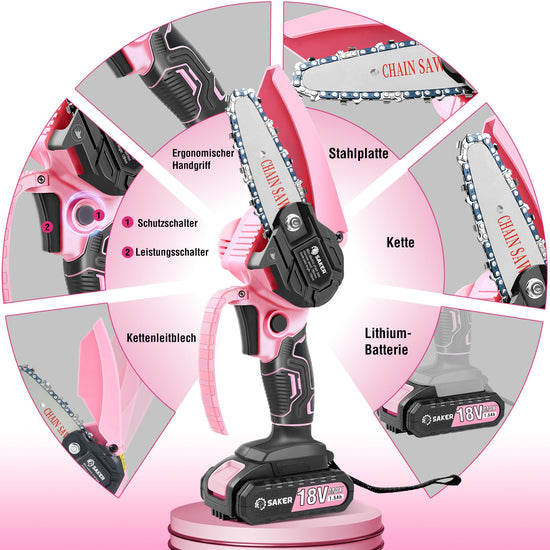 Design für Frauen, Saker 4 Zoll 18V Rosa Mini Kettensäge Akku Einhand Elektrokettensäge